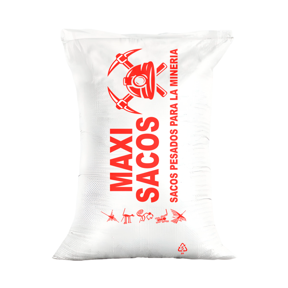 Los sacos mineros están confeccionados con un tejido tramado de polipropileno de alta densidad 100% virgen con aditivos anti UV, tienen una resistencia superior para el almacenamiento de cargas pesadas; se distingue por su acabado de corte térmico en zigzag y doble costura en la base lo que le da mayor seguridad.